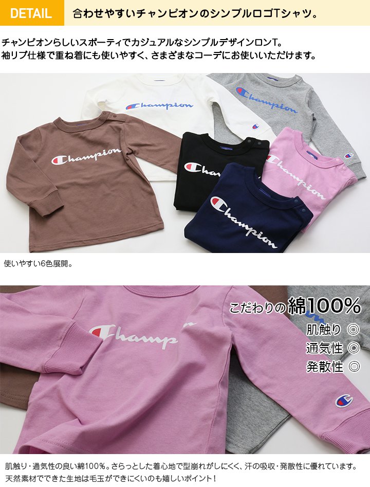 サイズ6070809095100110120130身丈--343738.5----身幅--283031----肩幅--222425----袖丈--293132.5----ベーシックなチャンピオンロゴ長袖Tシャツ!素材本体 綿 100%リブ部 綿 95% ポリウレタン 5%カラーブラック グレー ネイビー注意※ご使用のモニター環境によって、画面上と実物では多少色具合が異なって見える場合がございます。