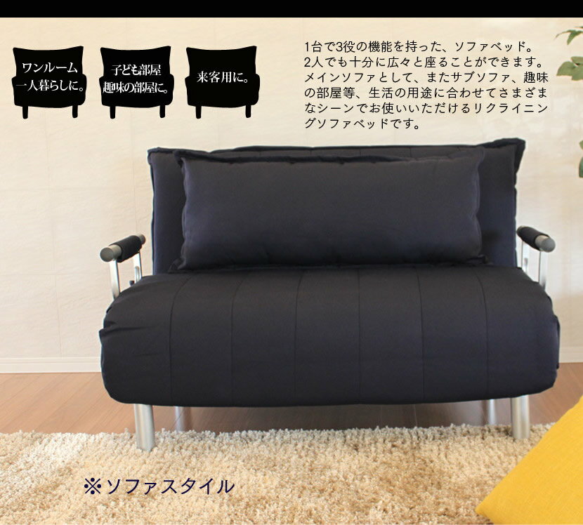 [送料無料!]リクライニングソファベッド・3人掛け・トリプルソファ・椅子・ブラック