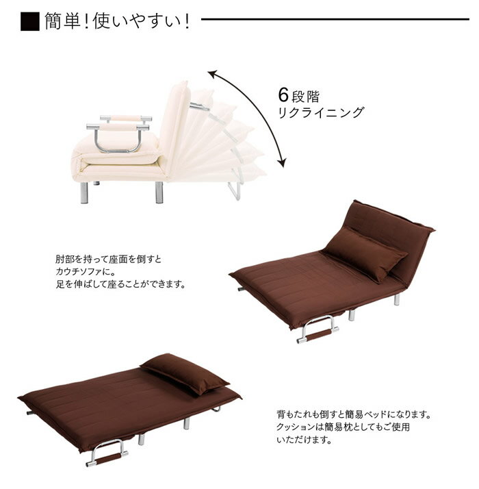 [送料無料!]リクライニングソファベッド・3人掛け・トリプルソファ・椅子・ホワイト