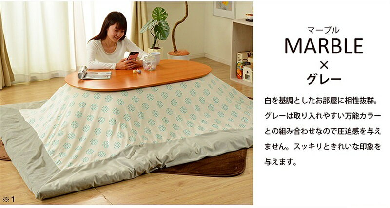 【素材】 [こたつカバー]素材:ポリエステル81%・レーヨン19% 中綿:ポリエステル100% 【サイズ】 (約)196×196cm ※サイズは±1%程度の誤差があります。